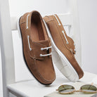 Introducing our new premium Nubuck Leather Boat Shoes, designed with the adventurous spirit and stylish needs of the modern mariner in mind.Crafted from high-quality nubuck leather, these Deck Shoes offers a soft, velvety texture combined with exceptional durability. The natural finish of the nubuck is specially treated to resist moisture and staining, making it perfect for handling the unpredictable elements at sea while maintaining its sophisticated appearance.