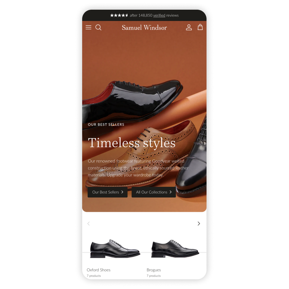 At Samuel Windsor, we believe in the power of timeless style. Founded in 2003 by Iain Burgess with a singular vision — to create high-quality, handmade leather shoes using traditional Goodyear welted construction — we quickly established ourselves as a favourite among those who appreciate quality and longevity. Our shoes became synonymous with durability, comfort, and classic design.But we didn’t stop at footwear. Over time, our collection grew to include smart-casual clothing for the discerning gentleman, evolving our brand from a specialist shoemaker into a complete lifestyle choice.
