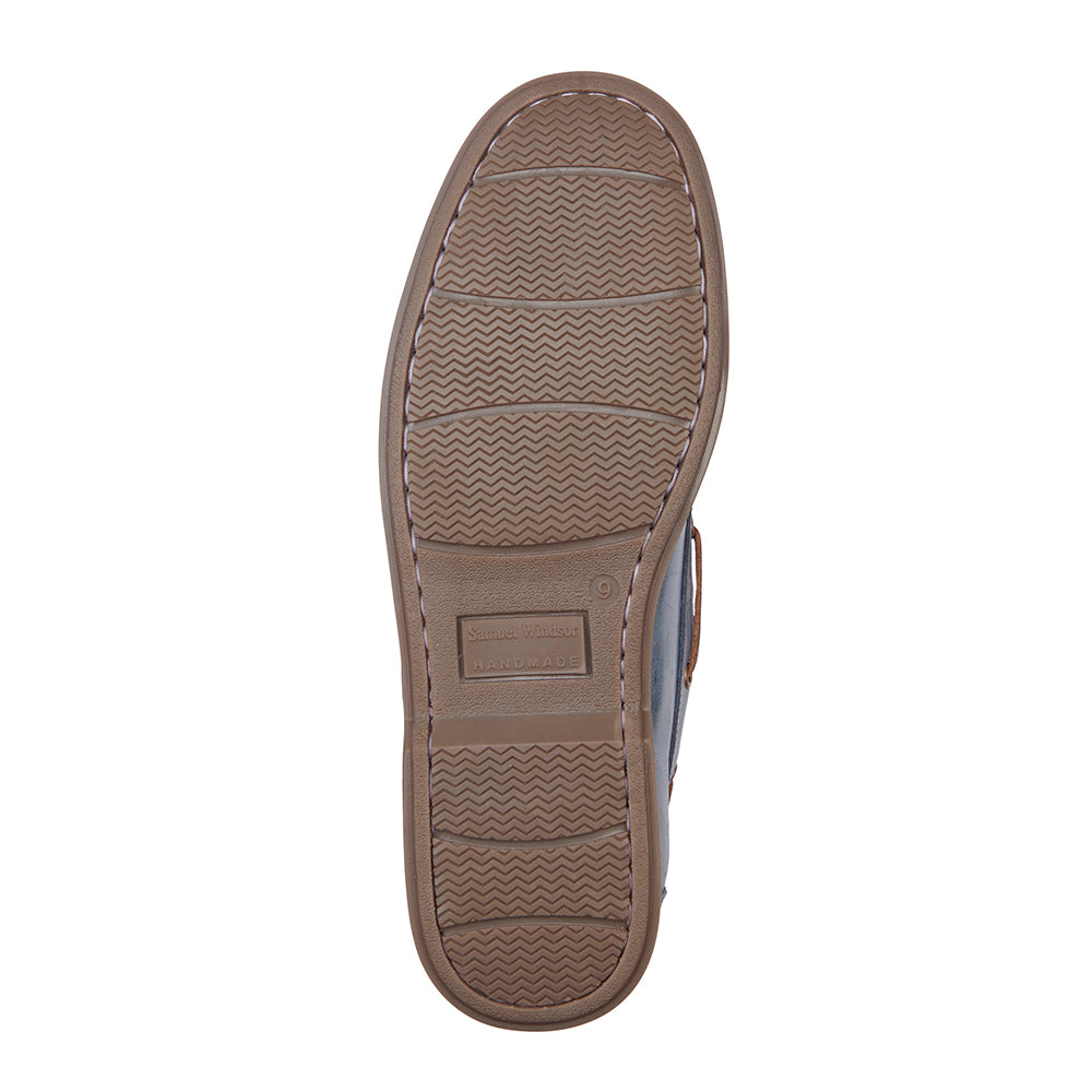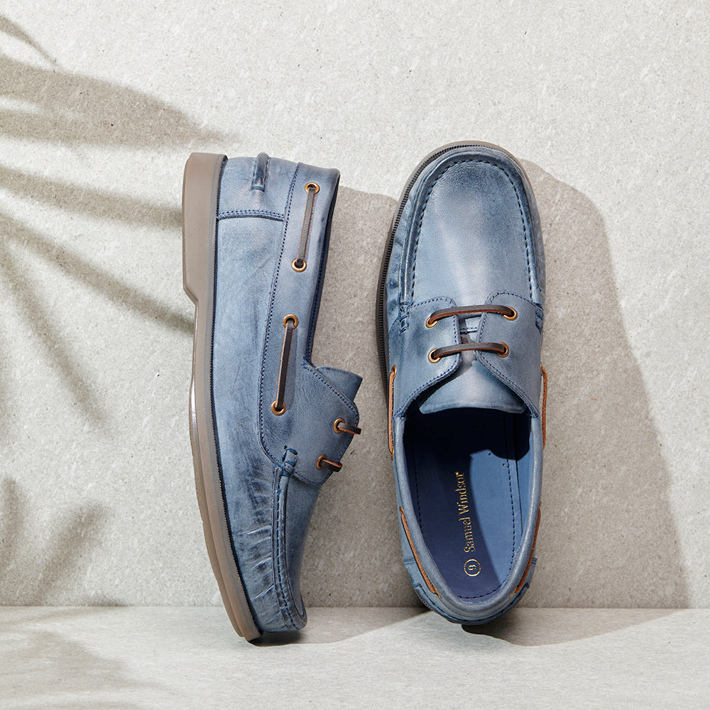 Crafted with meticulous attention to detail, our Samuel Windsor Powder Blue Deck Shoes combine premium leather with expert handmade craftsmanship. Made from supple powder blue leather and fully leather-lined, they offer lasting comfort and breathability. Finished with hand-stitched detailing and a non-marking rubber sole for dependable grip, these deck shoes bring a fresh take to a timeless classic. Experience the quality that defines Samuel Windsor. BV527